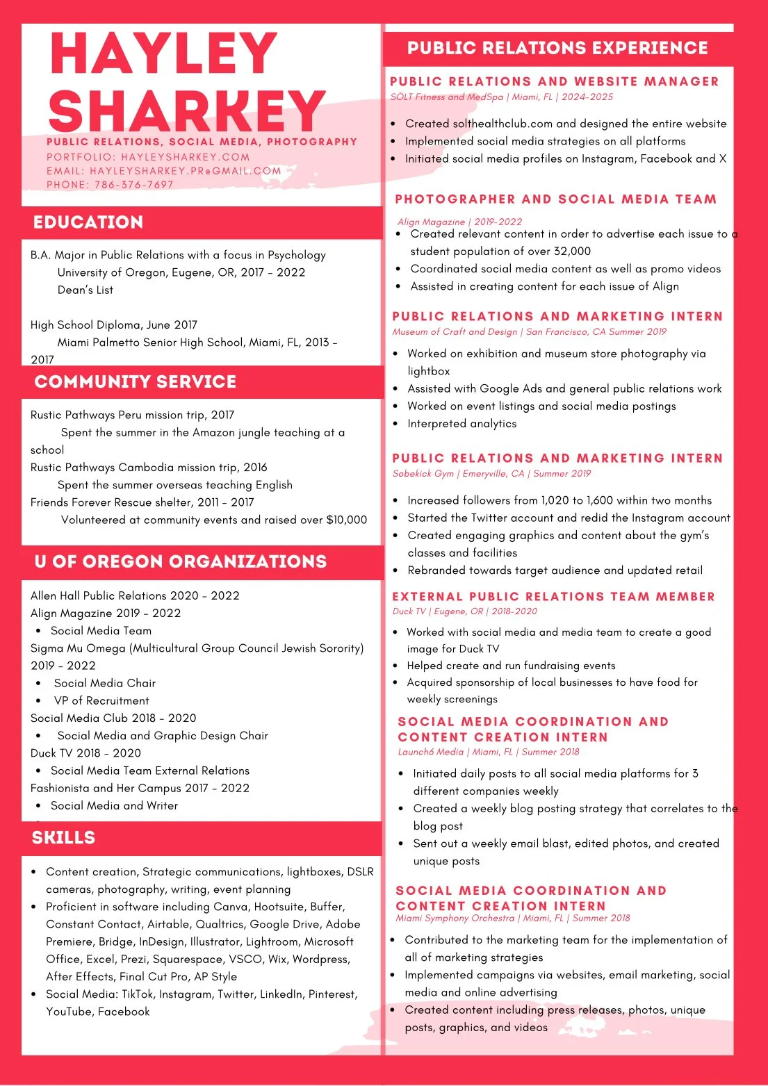 Social Media coordinator for SoBe Kick, Lucali Miami, and Bayclub Miami. Ran all social media platforms for the companies as well as sent out a weekly email blast, editing photos, and creating unique posts.